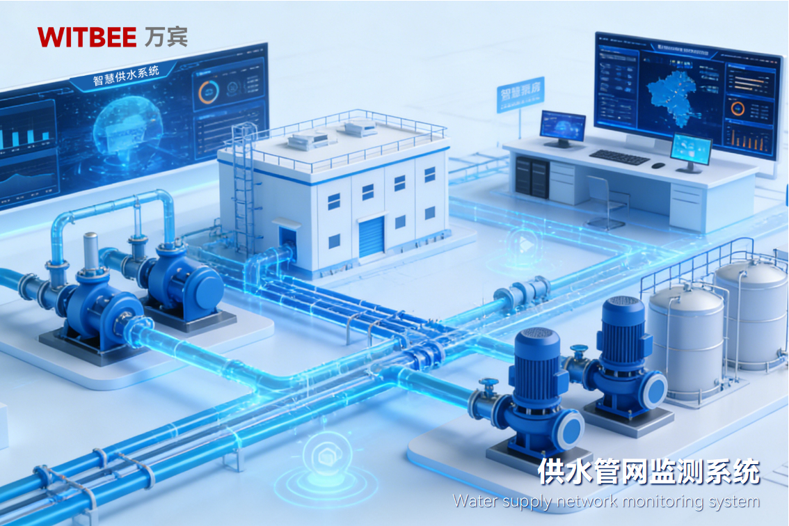 WITBEE?萬賓科技?供水管網監測系統通過流量、壓力、水質、漏失聲波等多維數據融合,實現漏點精準定位與靶向治理,助力水務部門從“盲人摸象”走向科學運維。